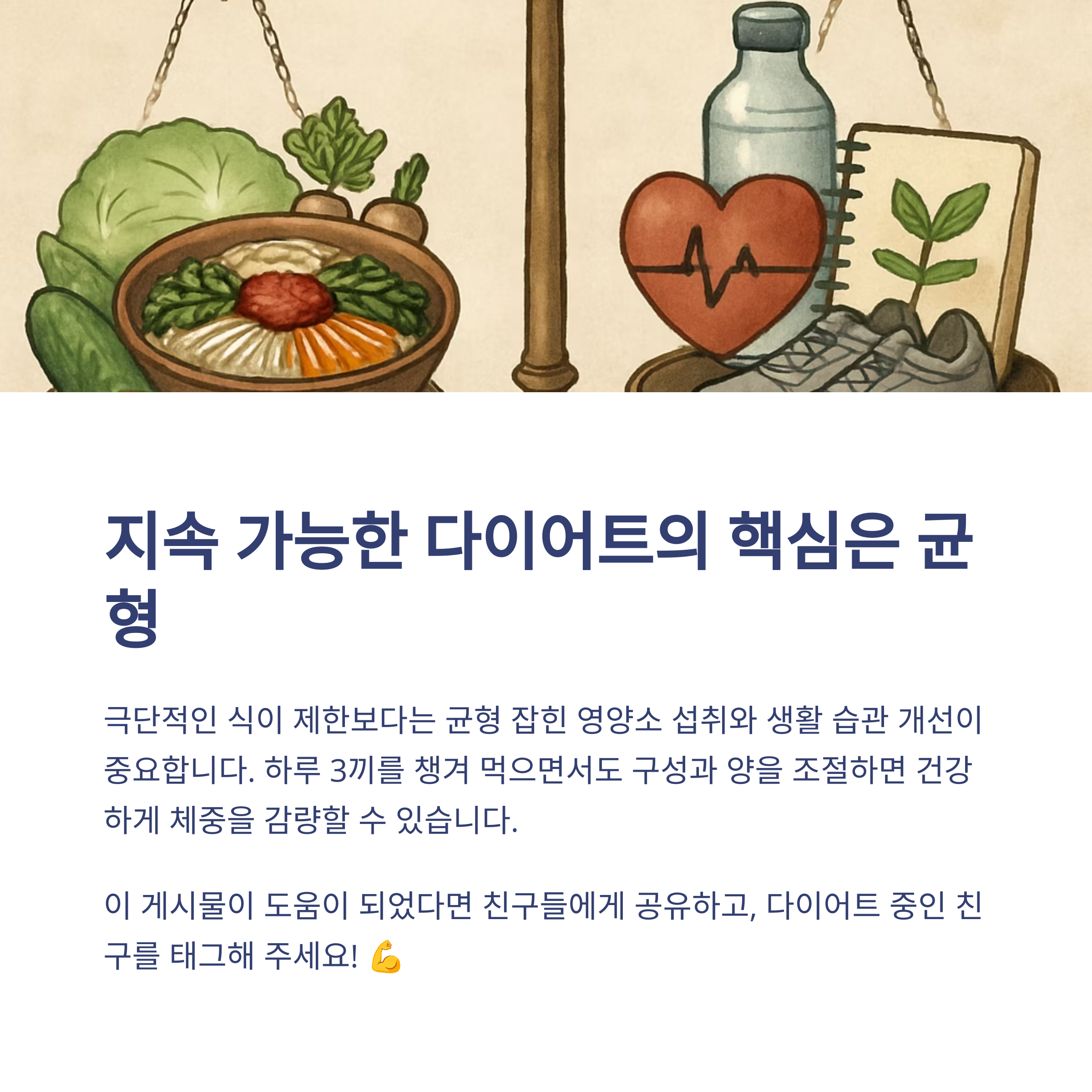 실천 가능한 식단과 규칙을 꾸준히 지키는 것, 그것이 바로 진짜 성공 비결이에요.