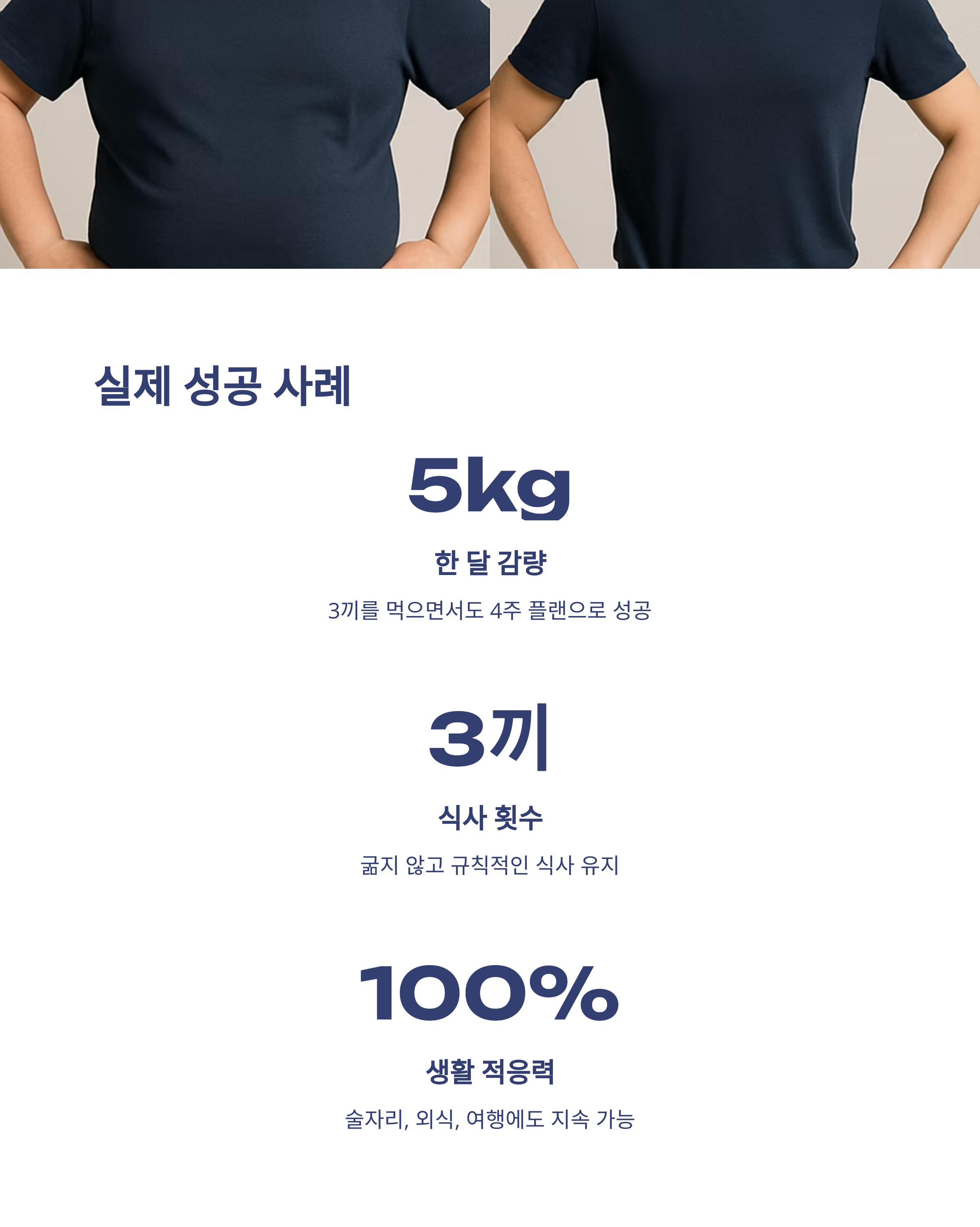 | 지속 가능한 루틴 | 여행, 회식 등에도 일관된 식사 원칙 유지로 요요 없이 유지 |