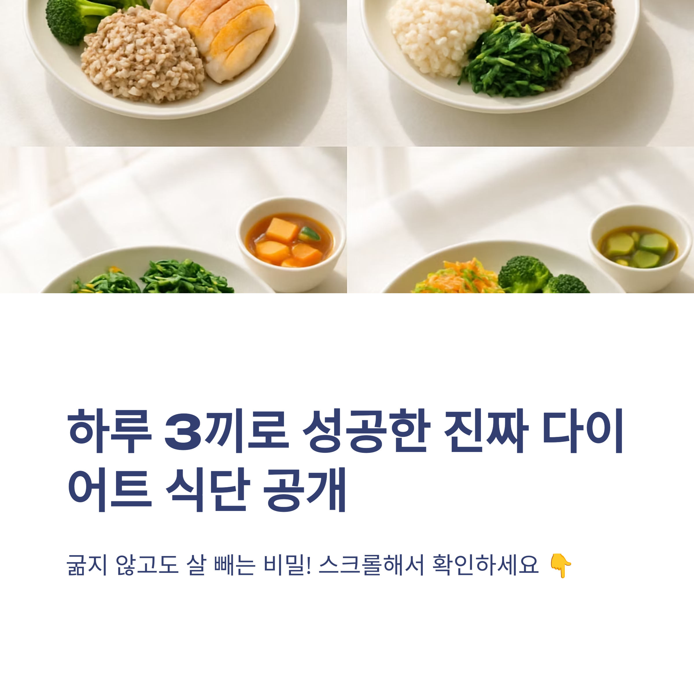 이제는 굶지 말고, 하루 3끼를 알차게 챙겨 먹는 식단으로 건강하고 행복한 다이어트를 시작해보세요.