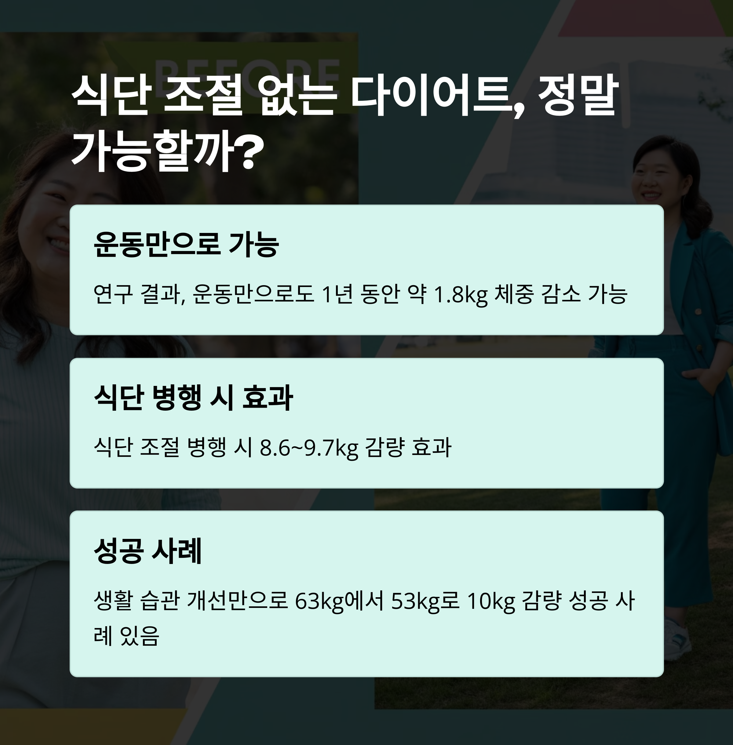 운동은 싫고 먹는 건 포기 못하겠다면? 식단 없이도 살 빠지는 방법, 진짜 있을까요?