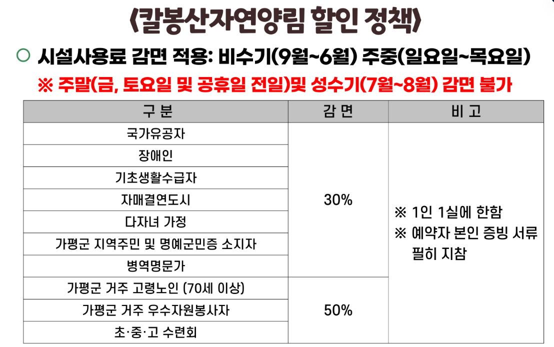 가평여행, 칼봉산자연휴양림, 가평숙소추천, 경기도자연휴양림, 숲나들e, 가평군민혜택, 휴양림예약, 자연속힐링, 국내여행지추천, 숲속의집